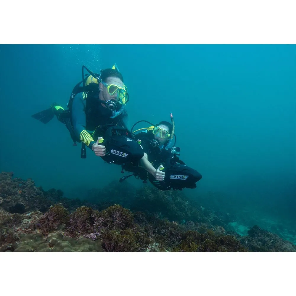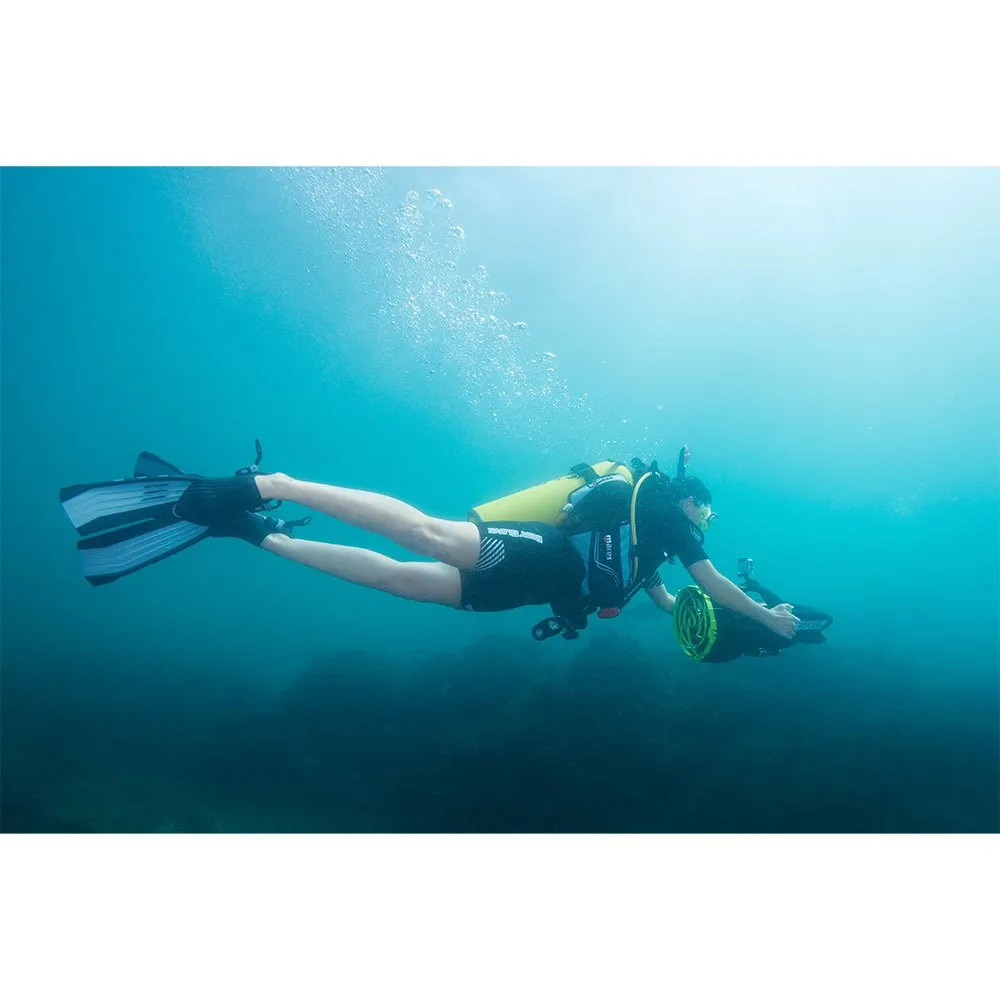 The flagship Yamaha 500Li Seascooter features the best in class power and speed. Designed for both professional and recreational divers this powerful Seascooter with 500 watts of power glides through the water at speeds up to 4.35mph (7km/h). Divers can spend more bottom time in the water by exerting less energy.