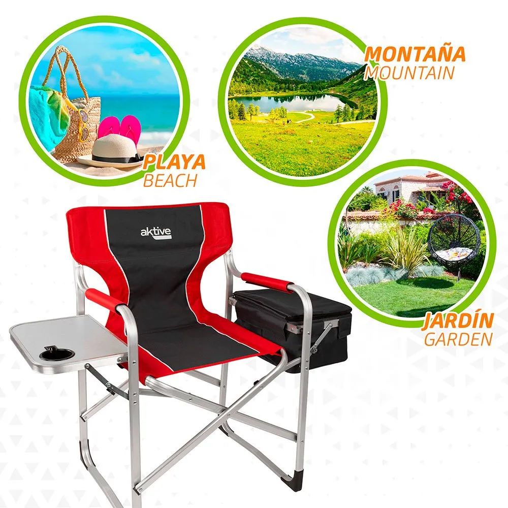 Black / Red, Pools, Furniture.The AKTIVE Aluminium With Tray And Iso Bag Director Folding Chair Black/Red is the perfect choice for those looking for a comfortable and practical seating option for their outdoor activities. This chair features an aluminum frame and a durable fabric seat that can support up to 110 kg. It also comes with a tray and an iso bag for convenient storage of your drinks and snacks. The chair is designed with portability in mind, allowing you to easily fold and carry it wherever you go.Whether you’re enjoying a day at the beach or attending an outdoor concert, this chair offers a comfortable and convenient seating experience. Featuring a sleek black and red design, it’s also a stylish addition to your pool or patio furniture collection. Invest in the AKTIVE Aluminium With Tray And Iso Bag Director Folding Chair Black/Red for a comfortable and hassle-free outdoor experience.