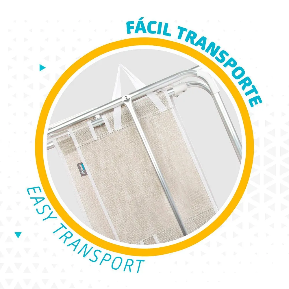 Made of aluminum and textilene, resistant and waterproof with a beige color design.