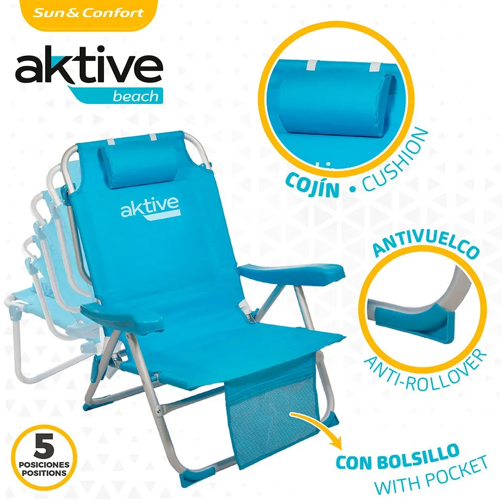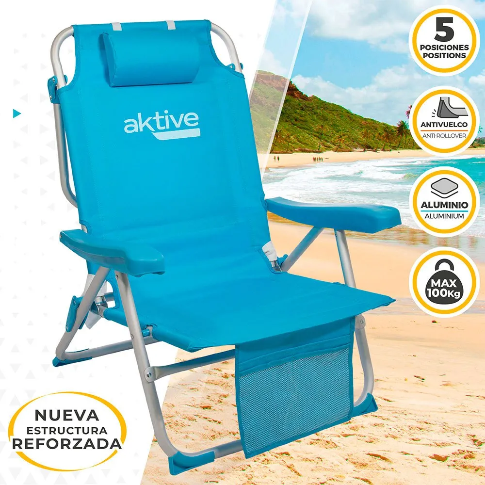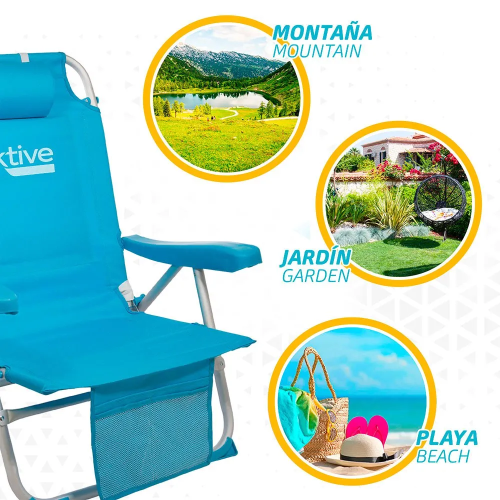 Practical 5-position adjustable lounger with ergonomic armrests to enjoy the outdoors.
