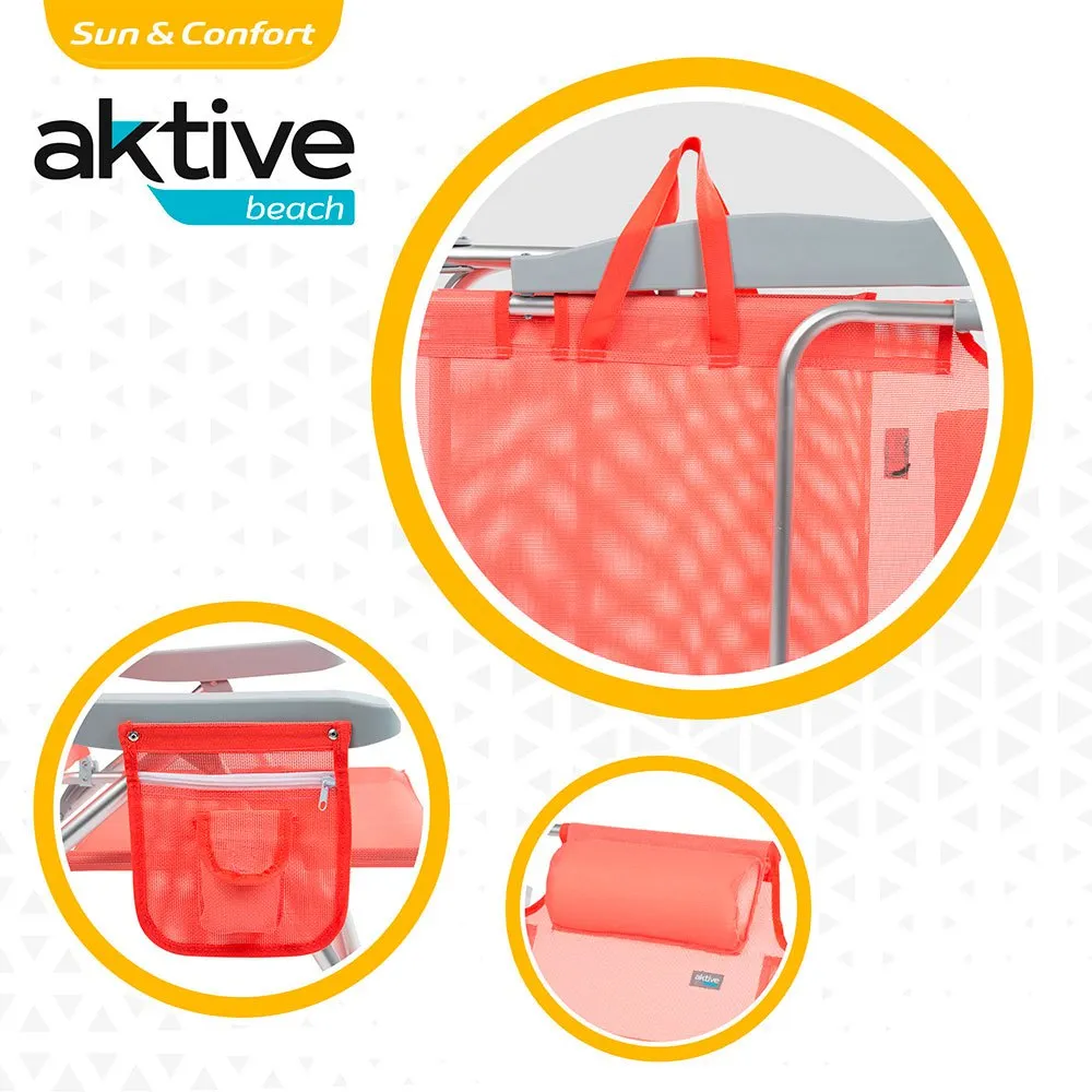 The AKTIVE Low Folding Chair is a versatile and modern seating option that can be used both indoors and outdoors, whether you want to relax by the pool or on your patio. With dimensions of 48 x 54 x 82.5 cm, this chair is designed to offer comfort and convenience, and is made with a lightweight yet sturdy aluminum frame that can support up to 120 kg of weight.This particular model comes in an eye-catching flaming red color that adds a pop of vibrancy to any decor, and it features a multi-position backrest that allows you to adjust the angle to your liking. Whether you want to sit upright or lean back and relax, this chair can accommodate your preferences.In addition, this AKTIVE Low Folding Chair is easy to store and transport, thanks to its compact foldable design that allows it to be stored in small spaces when not in use. This makes it a great choice for camping trips, picnics, or any other outdoor activity that requires comfortable seating.Overall, the AKTIVE Low Folding Chair is a quality piece of furniture that combines style, functionality, and durability, making it a great investment for anyone who values comfort and convenience in their outdoor seating arrangements.