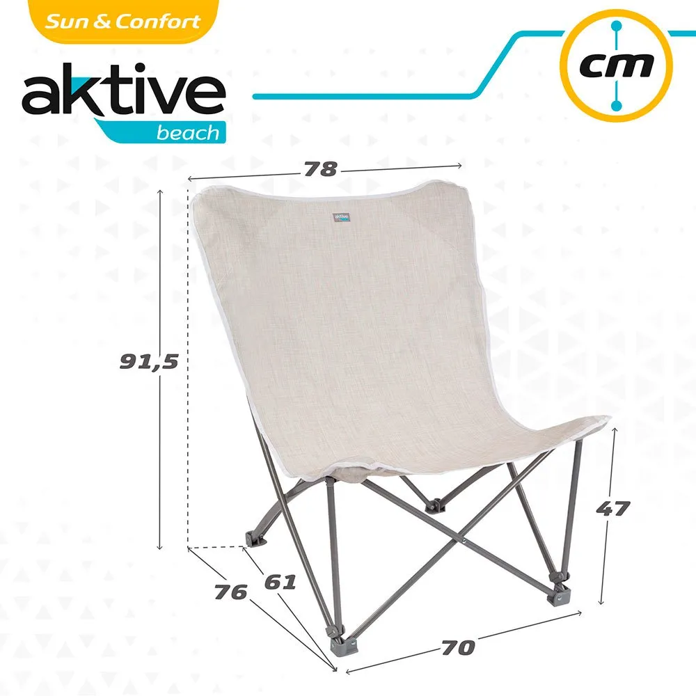 Go equipped for your trips to the mountains or the beach with the camping folding chair XL from the Aktive Camping line. The chair has an elegant beige design, its frame is made of steel and the seat material is made of textilene (easy to clean with a damp and resistant cloth).
