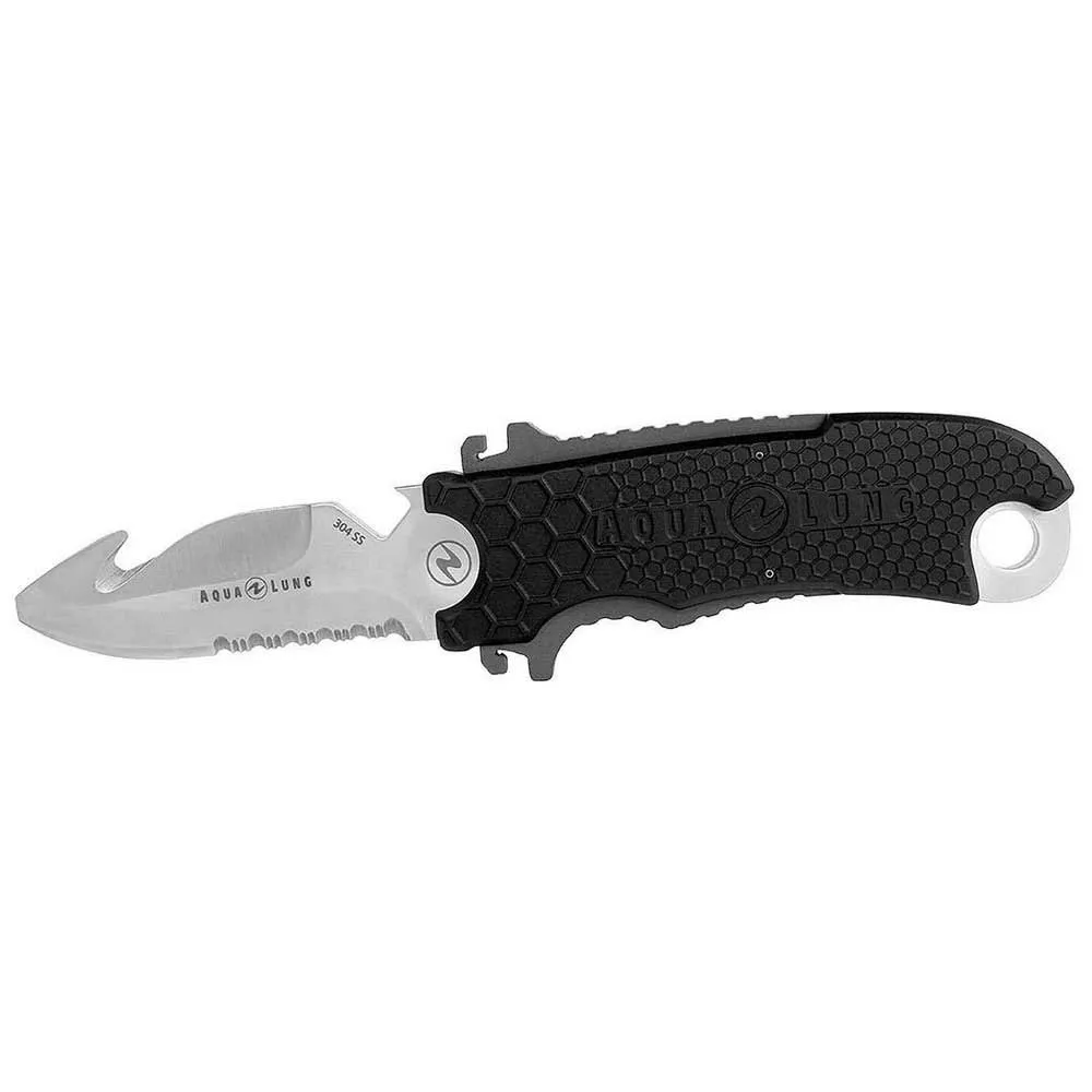 These Small Squeeze Knives feature the time-tested patented “squeeze-lock” design which allows the user to easily remove and secure the knife into the sheath, every time. The articulated handle, metal butt cap and blade safety features are meticulously designed to suit the needs of a diver. It has even got a bottle opener and can be mounted on to any BCD.