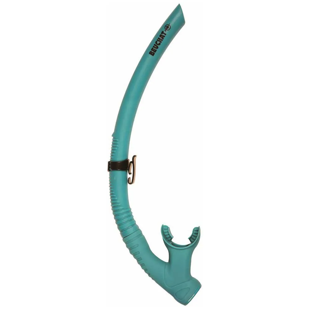 The spy purge snorkel has a mouthpiece and a valve in non-allergic silicone. the profiled purge is well integrated in the snorkel and allows to evolve without resistance during a snorkeling