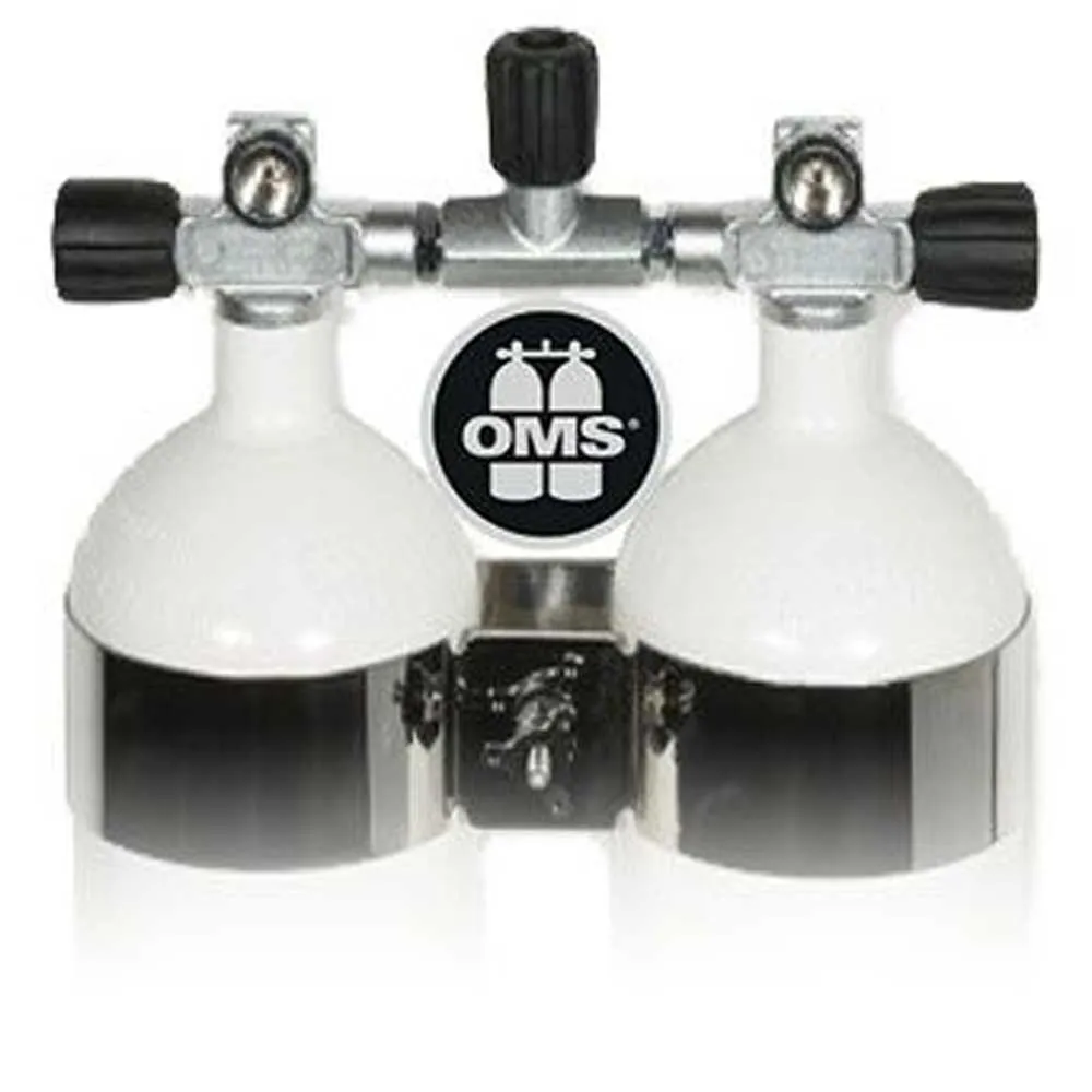 Twinset Steel Cylinders 7 litre, 230 bar, DIR Style – stainless steel wide-distance tank bands and rubber knobs.