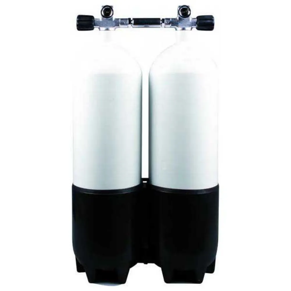 Twinset Steel Cylinders 10 litre, 230 bar, Twin Boot, Manifold.