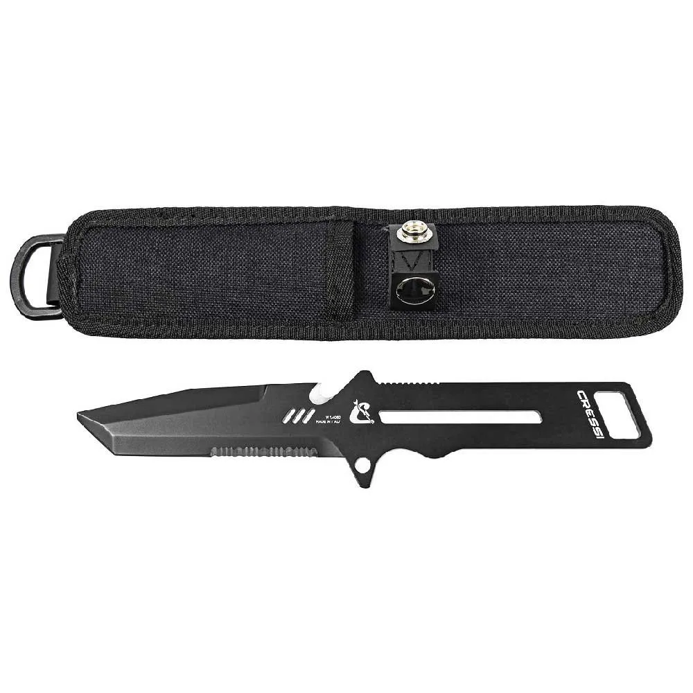 Italian-Made Professional, Multipurpose Diver’S Knife, With Blade And Handle In W 1.14116 Martensitic Stainless Steel, Hardness Hrc 55/56, For An Extremely Sharp And Honed Blade. The Idroglider Gold Black Surface Treatment Increases Resistance To Corrosion In Marine Environments. It Has A V-Shaped Cross Section Blade And Is Equipped With A Saw, A Line Cutter, A Bottle Opener, A Flat Screwdriver And A Loop For The Leash. Available In Two Sizes, 23 Cm And The 11 Cm Compact Version, With A 1000 D Ballistic Nylon Sheath.