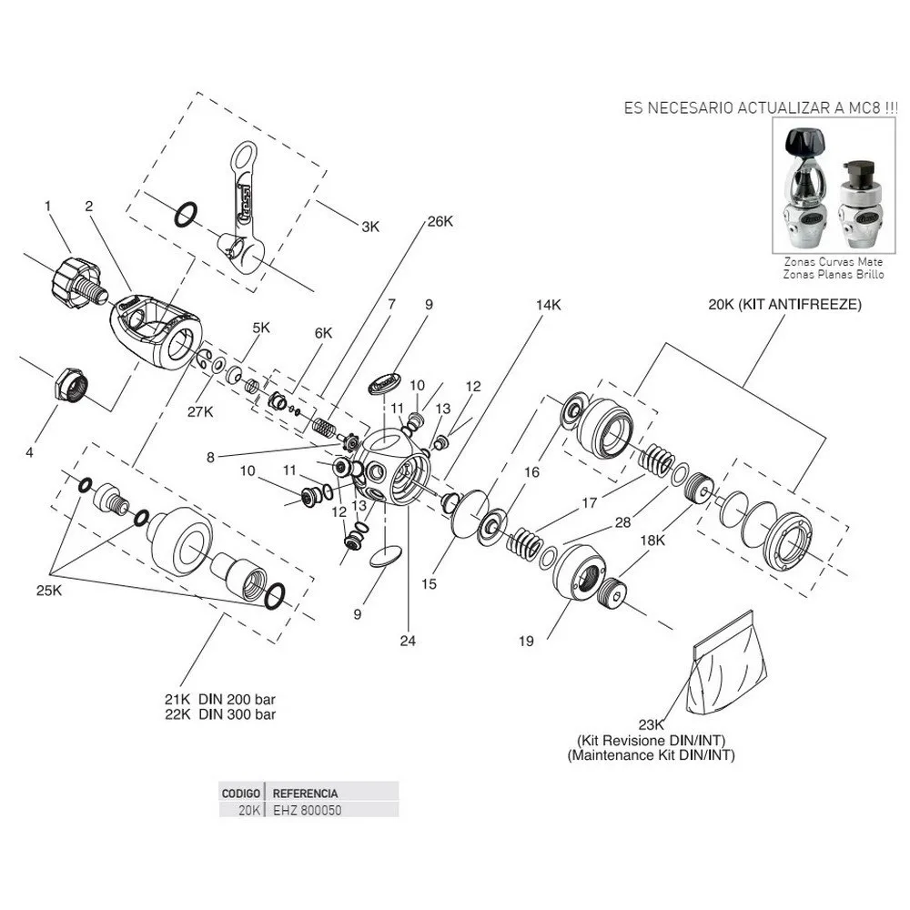 ANTI-ICE KIT 1ST STAGE MC7-MC8 – Isolation and antifreeze SC (Sealed Chamber) kit that isolates completely the diaphragm and the spring from water contact, turning it into the perfect option to work in extremely low temperature conditions because it reduces the possibility of freezing in extreme conditions.