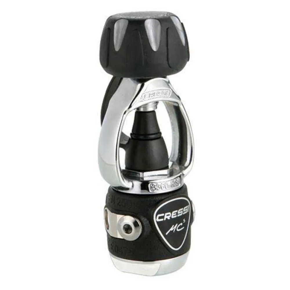 New greatly simplified single-hull second stage made of ABS + elastomer of really compact size (diameter of 6 cm) and extremely light (145 g). Its mechanism and development are perfectly planned to obtain the minimum number of components and great strength. It´s a smart shopping option because of its combination of features – reliability – price – maintenance cost. It´s suitable for maximum reliability uses and also as a travel regulator due to its lightness combined with the 1st stage MC5, as diving centers regulator, as working regulator with AC2 or as high range set with MC9.