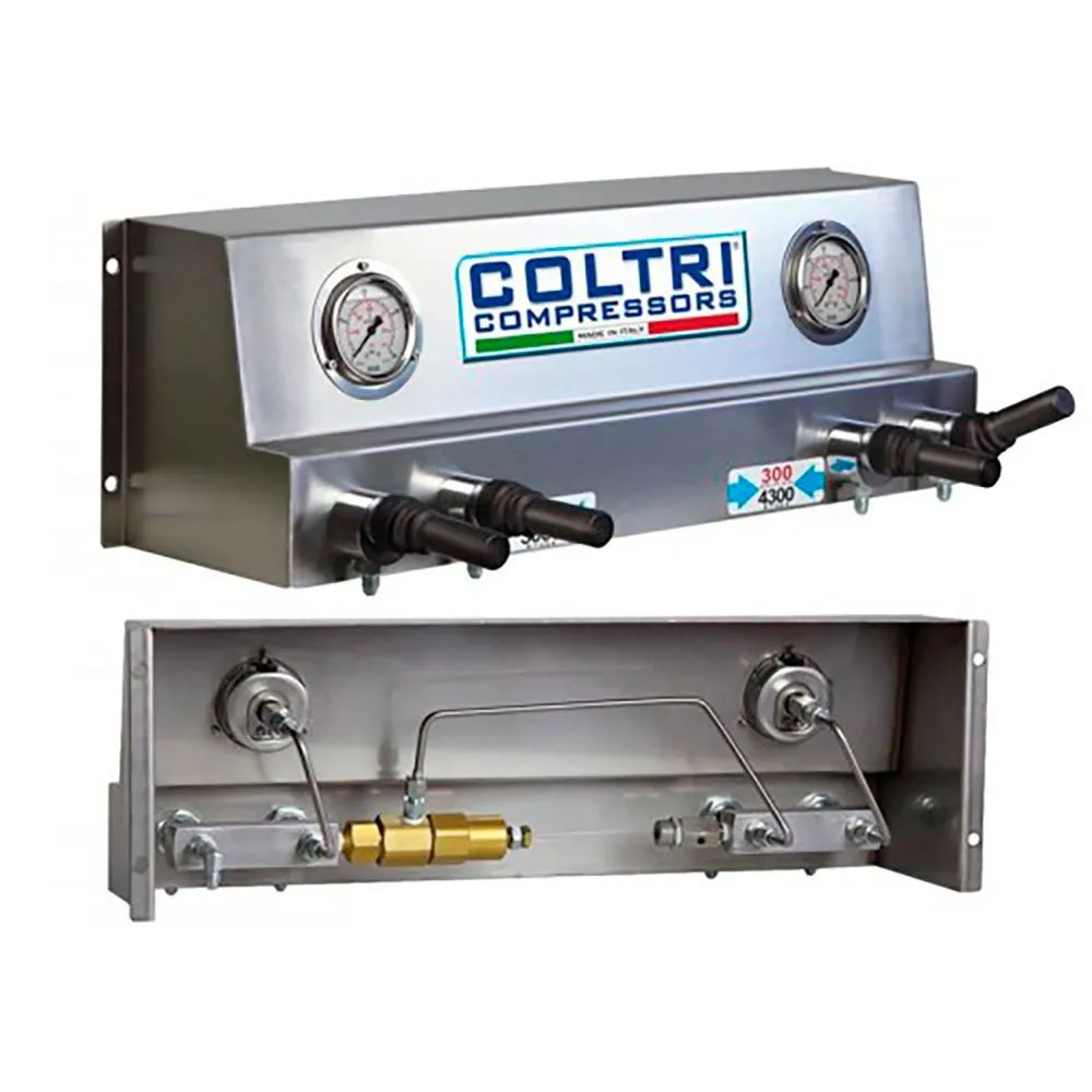 4-way stopcock distribution panel, 2 of 232 bar and 2 of 300 bar, with pressure gauge.
