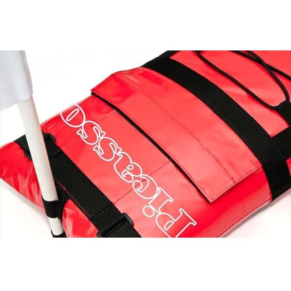 Elastic mesh on top, to quickly reach many useful items, like food or water. A total of 7 D-Rings ( 5 stainless steel + 2 plastic ) on the bottom, to fix fish-holders, mesh bags and other accessories. Alpha flag pole with 50 Cm high, for a total visibility in the water, even from very far distances.