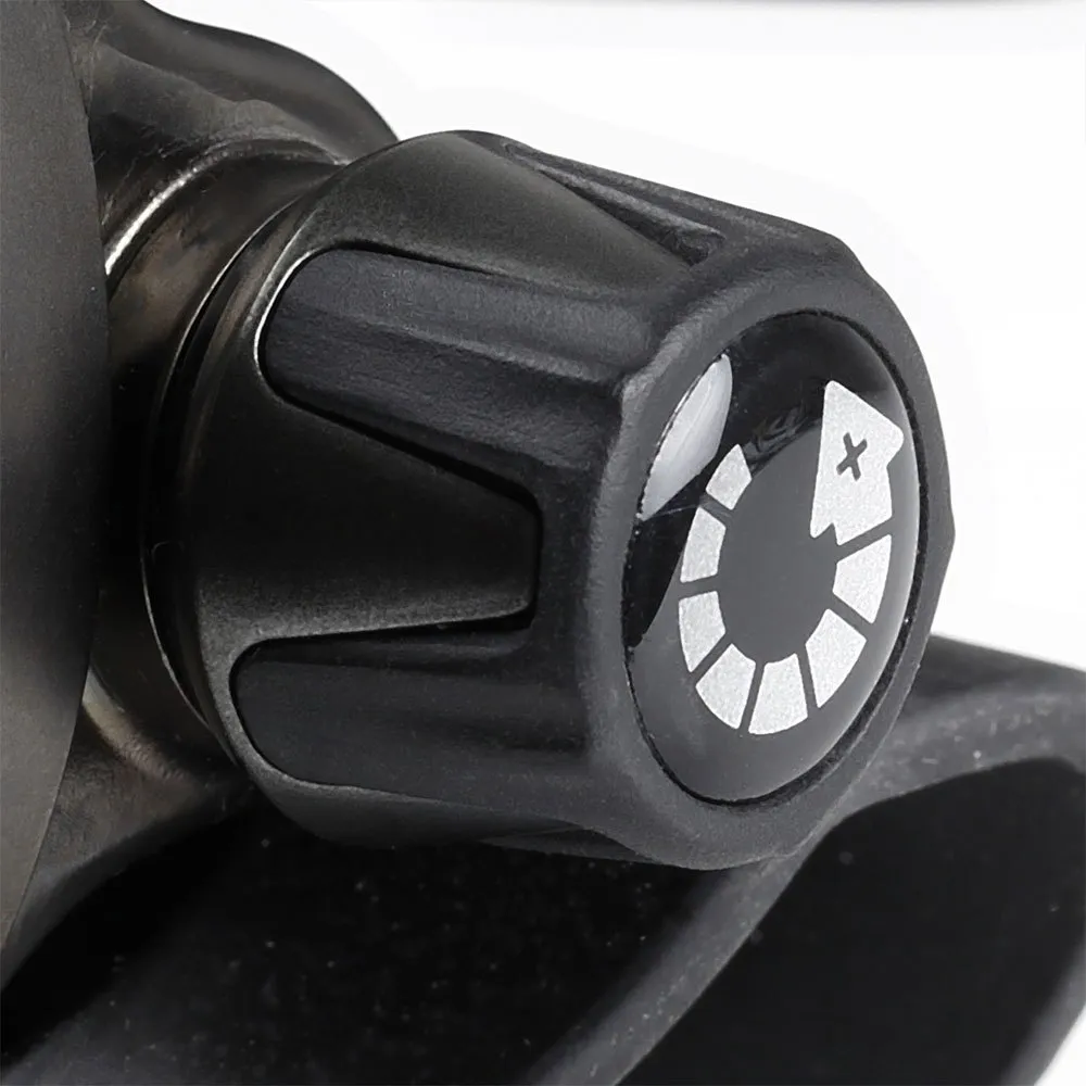 – The air bypass tube delivers air to the mouthpiece creating a swirling vortex with a low pressure area in the center that keeps the diaphragm down during inhalation, for very sensitive and easy breathing at all depths.