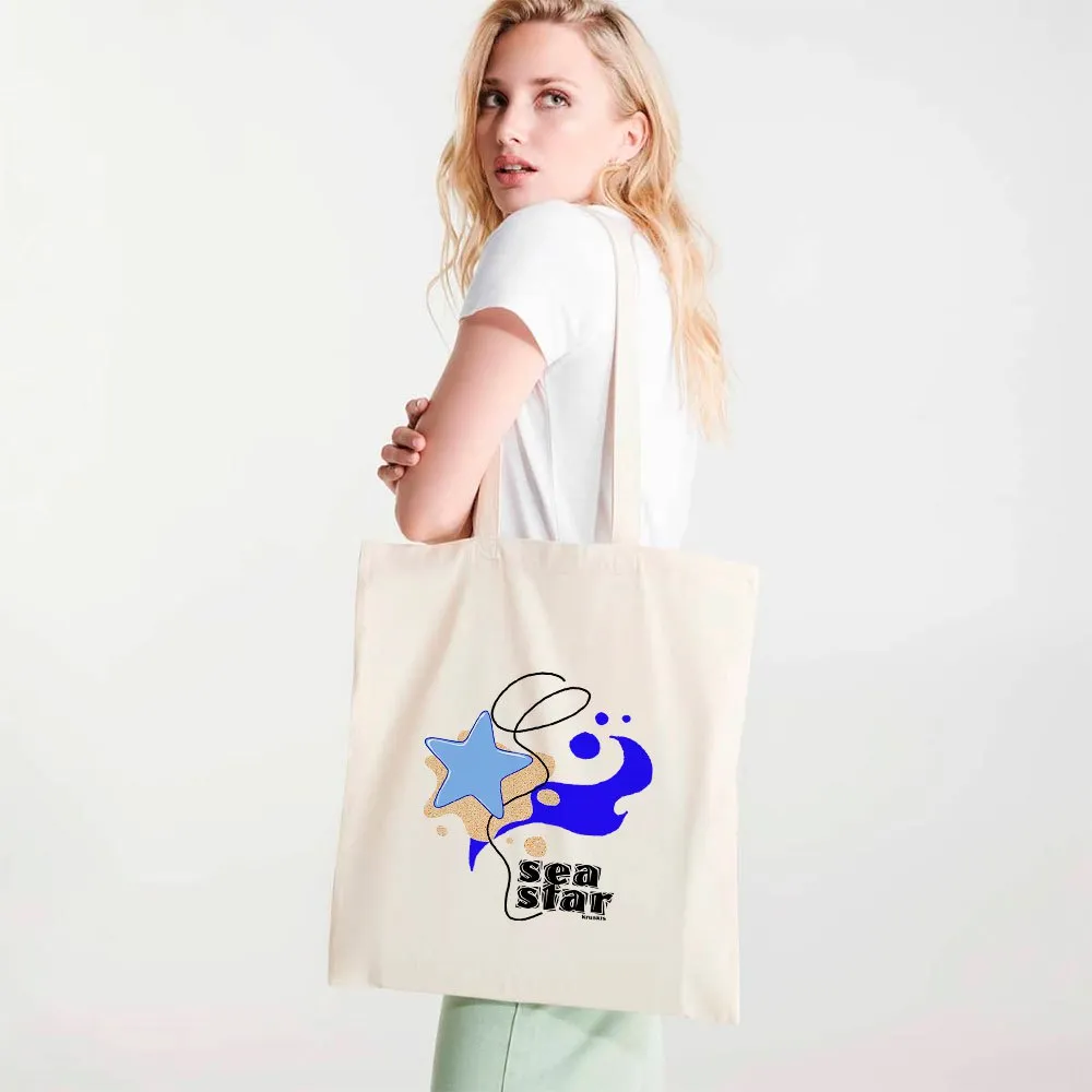 Tote bag made of cotton fabric in natural colour, with long handles in same colour tone.