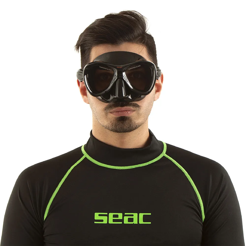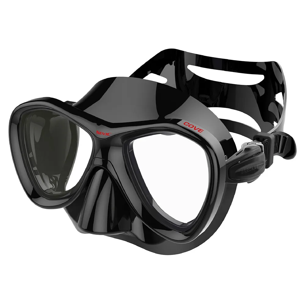 Seac Cove, dive mask for scuba diving, spearfishing and snorkeling, hypoallergenic black silicone.