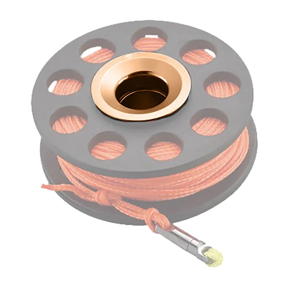 The spinner is a metal piece that fits inside the guide reel to make it easier to hold and spin on the finger when releasing the line and using the marker buoy.