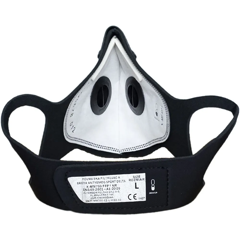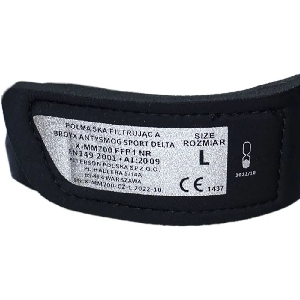 The BROYX DELTA pollution and allergy mask is certified personal protective equipment according to the EU law and has CE marking. All the tests and certification have been carried out in a leading Polish facility, i.e. Central Institute for Labour Protection (CIOP) in Łódź. The mask face-piece is made of neoprene and features unique fastening around the ears, which provides additional stabilisation. The use of neoprene provides additional protection against cold.