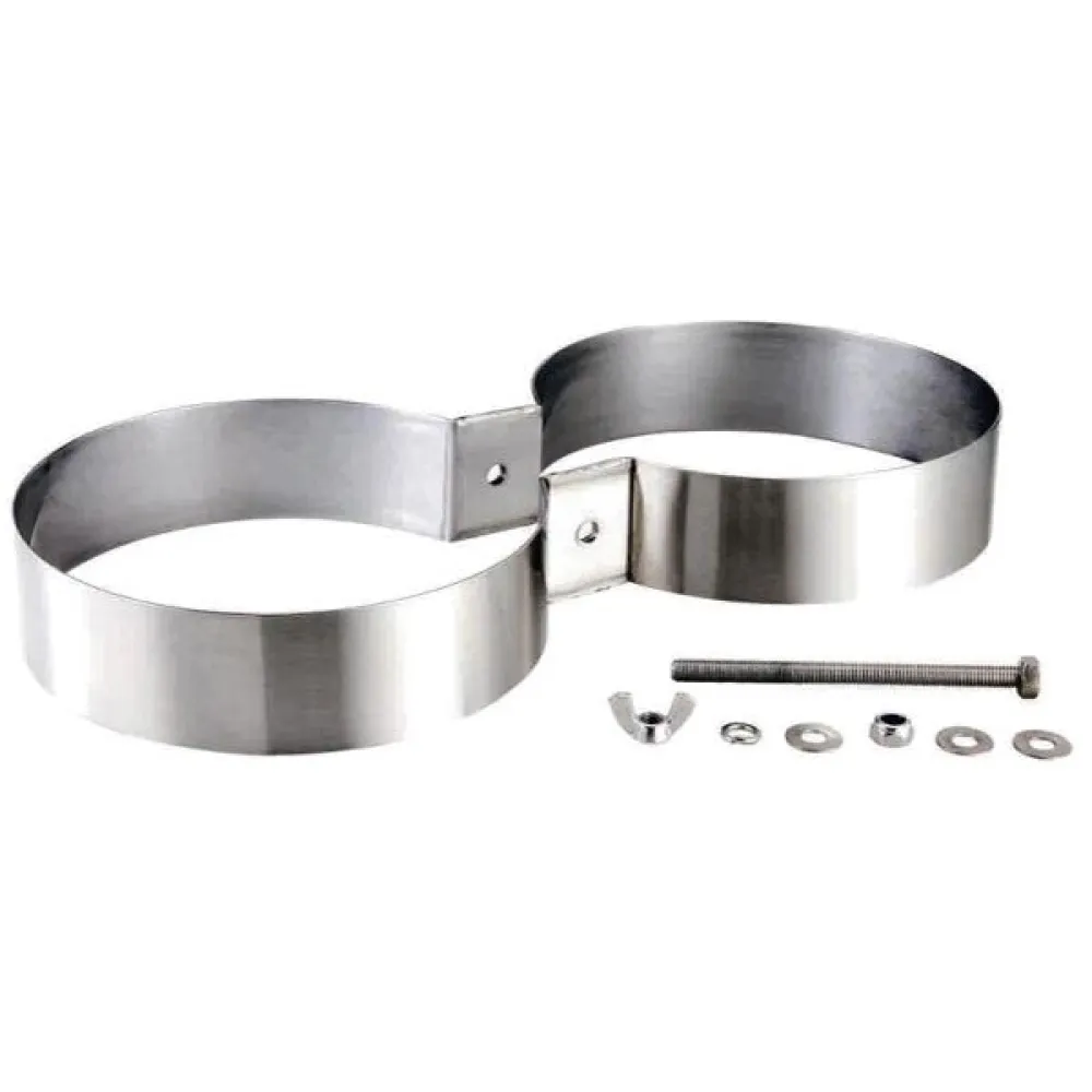 Stainless steel bands for the assembly of twin tanks. 60mm wide, double reinforcement at the fixing point.