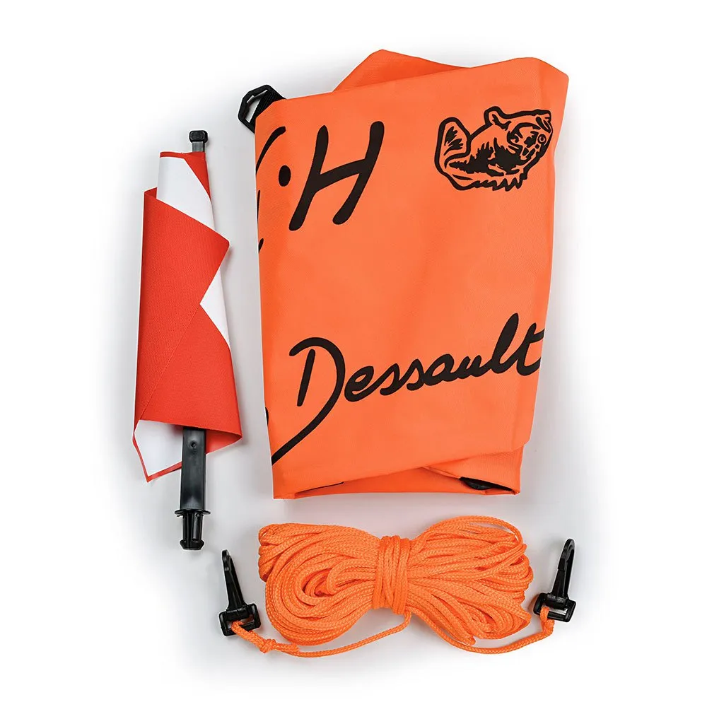 The buoy features a double signalling flag and a floating Nylon line.