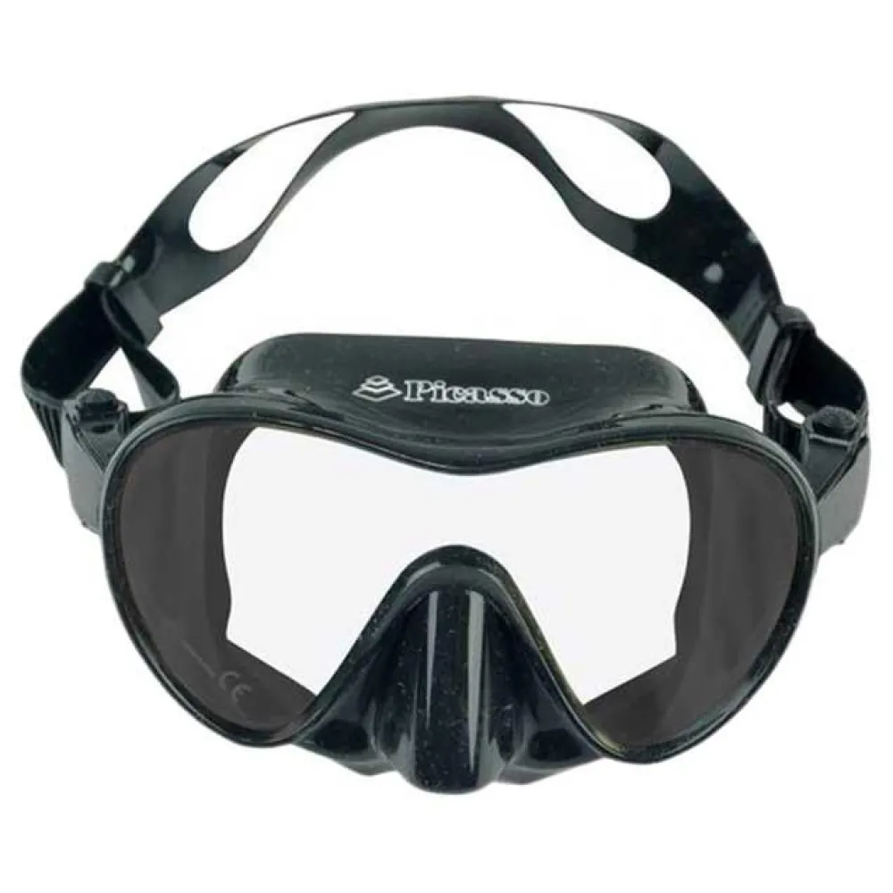 Only one big glass and no frame. Maximum comfort and maximum visibility! Ideal for difficult faces that normally cant find a mask that fits perfectly or that have pain on the top of the front head / nose!