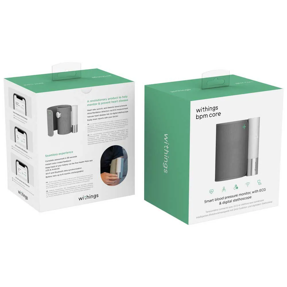 Withings BPM Core is not only a highly accurate smart blood pressure and heart rate monitor, it is the rst connected device that can detect, in the comfort of your home, the most prevalent forms of valvular heart diseases and atrial brillation, both a variety of cardiovascular diseases frequent amongst people su ering from high blood pressure, which can help prevent serious complications from progressing.