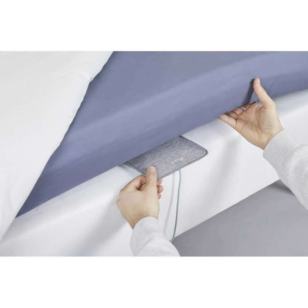 Measures your respiratory rate, heart beats via ballistocardiography and body movements across the mattress.