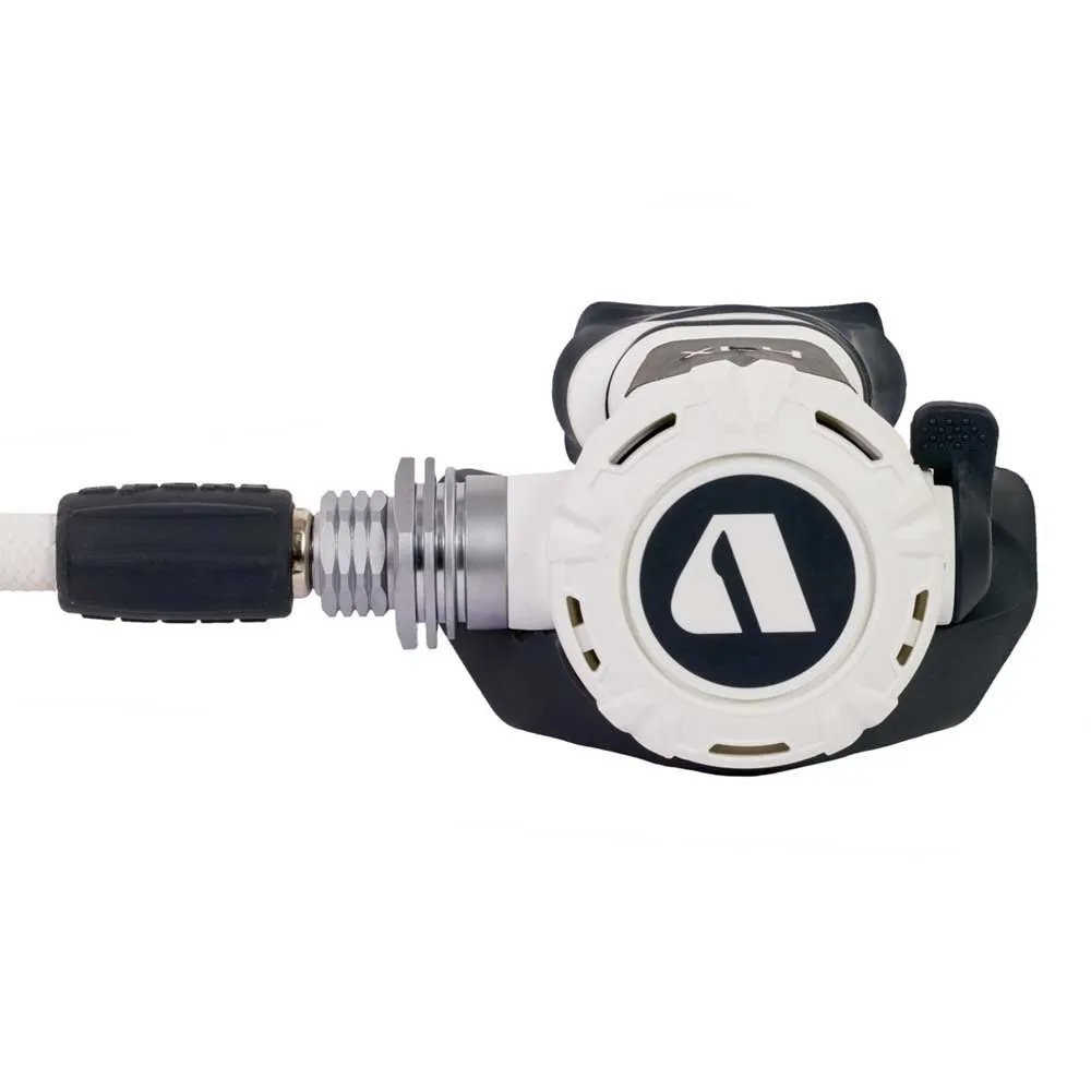 Second StageCompact and lightweight second stage improves comfort and helps reduce jaw fatigue on long duration dives.High performance pneumatically balanced lever operated poppet valve.Large, over moulded self-flushing and controllable purge button.Ergonomic Venturi lever is easy to use and locate.Flexible nylon braided hose has better cold water performance than a traditional rubber hose.Standard metallic hose connection for interchangeability.Comfo-bite mouthpiece has a unique bridge that fits across the upper palate and does not require bite pressure to stay in place.Re-useable mouthpiece clip makes it simple to change mouthpieces in the field.Durable and flexible rubber exhaust tee provides excellent bubble diversion.UV inhibitors to help prevent discolouration of the white materials.
