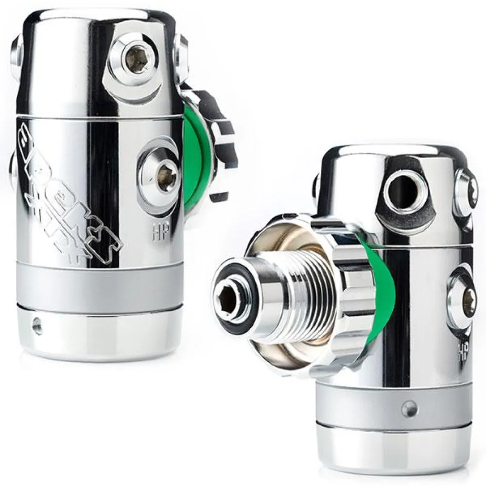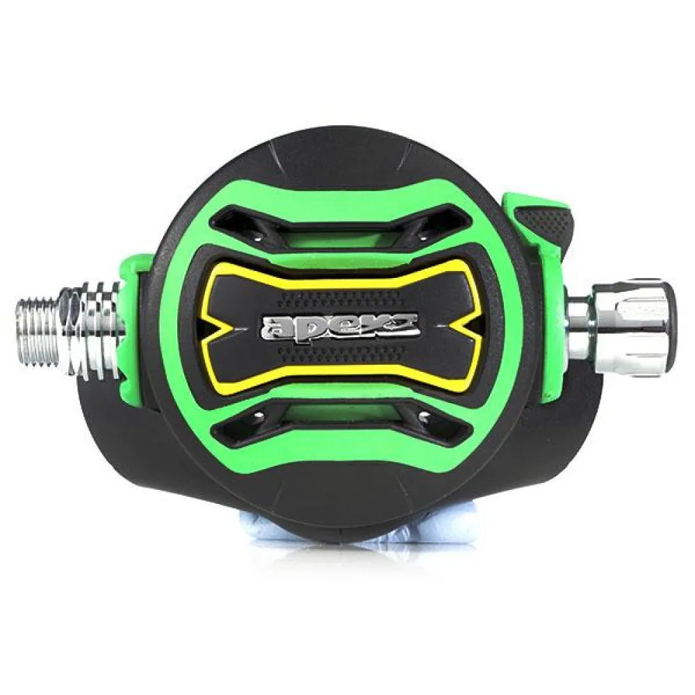 Features an innovative Diver Changeable Exhaust system (DCE). This system gives the diver the ability to change from a small exhaust tee to a large exhaust tee. This gives the user a choice, wider exhaust tee for minimal bubble interference (essential for underwater photography) and narrow exhaust tee for a smaller compact comfortable regulator. Only the compact exhaust tee is supplied.
